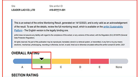 在創(chuàng)思維驗廠網老師專業(yè)技術、全程跟進耐心細致輔導以及公司全體員工配合下,一次性順利通過ITS-BSCI驗廠并取得B級合格報告,為將來公司發(fā)展奠定了良好的發(fā)展基礎,既開拓了市場同時也增加了消費者對公司的信賴,在這里再次祝賀老撾工廠LEADER LAO CO,LTD 2023年一次性成功通過ITS-BSCI驗廠并取得B級合格報告,同時也期待未來再次與創(chuàng)思維驗廠網合作!