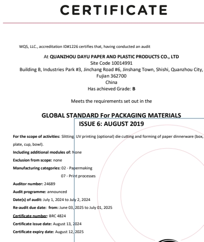 祝賀泉州大宇包裝制品有限公司2024年快速通過(guò)FSC認(rèn)證、BRC認(rèn)證、SEDEX-4p驗(yàn)廠審核