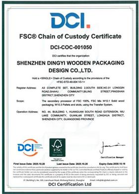 祝賀深圳市鼎翼木箱包裝設計有限公司2025年快速通過FSC森林認證并取得證書