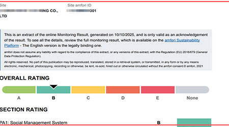 在創(chuàng)思維驗廠網(wǎng)老師專業(yè)技術(shù)、全程跟進(jìn)耐心細(xì)致輔導(dǎo)以及公司全體員工配合下,一次性順利通過BSCI-B級,為將來公司發(fā)展奠定了良好的發(fā)展基礎(chǔ),既開拓了市場同時也增加了消費者對公司的信賴,在這里再次祝賀柬埔寨LISHUN BOYE CLOTHING CO.,LTD 2025年成功通過BSCI-B級,同時也期待未來再次與創(chuàng)思維驗廠網(wǎng)合作!